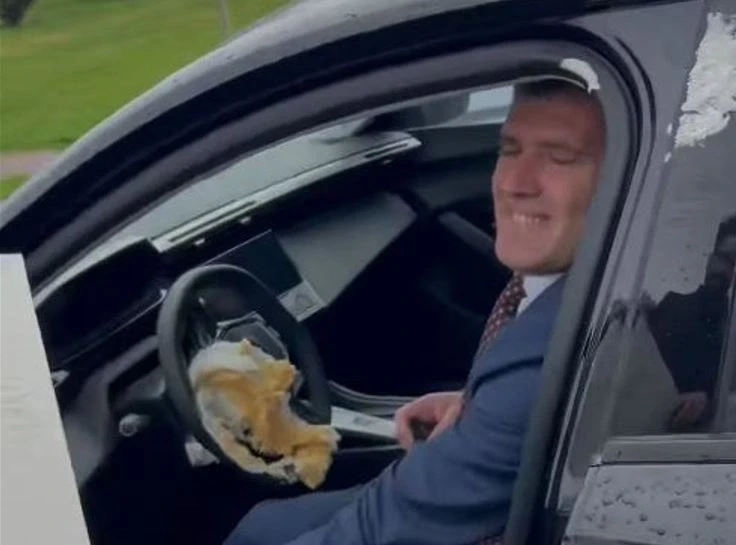 Por Fejzullahu nuk e pranoi dhe më pas aktivisti Dibran Hoxha ia hodhi tortën kur kryetari i ZRRE-së hyri brenda në veturë.