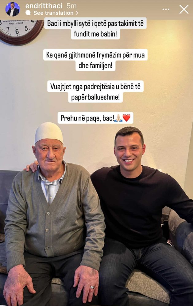 Djali i Thaçit reagon për vdekjen e gjyshit: I mbylli sytë i qetë pas takimit të fundit me babin