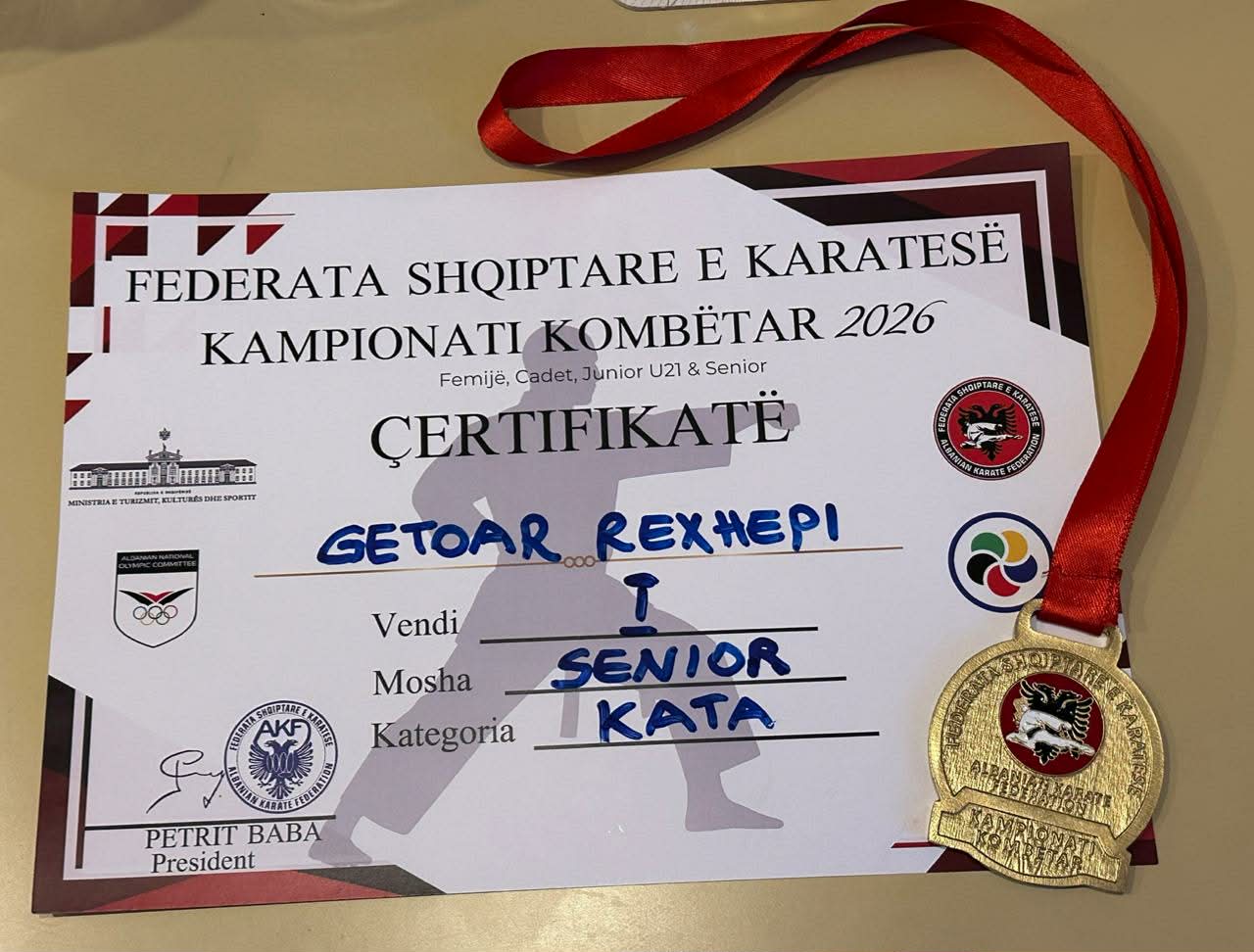 Major Getoar Rexhepi në Kampionatin e 27-të Kombëtar të Karatesë të Karatesë për moshat kadet, junior, U21 dhe senior të mbajtur në Republikën e Shqipërisë ka arritur të shpallet Kampion Kombëtarë i Karatesë.