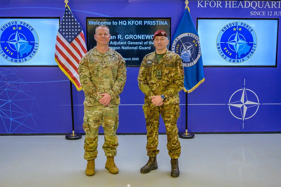 Komandanti i KFOR-it, Enrico Barduani, ka takuar shefin e Gardës Kombëtare të Oregonit, Alan R. Gronewold.