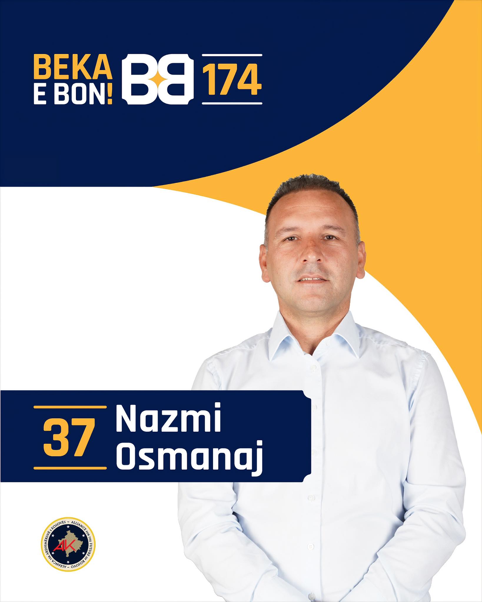Nazmi Osmanaj është kandidat për Asamblenë Komunale të Prishtinës nga radhët e Aleancës për Ardhmërinë e Kosovës (AAK), ku garon me numrin 37.