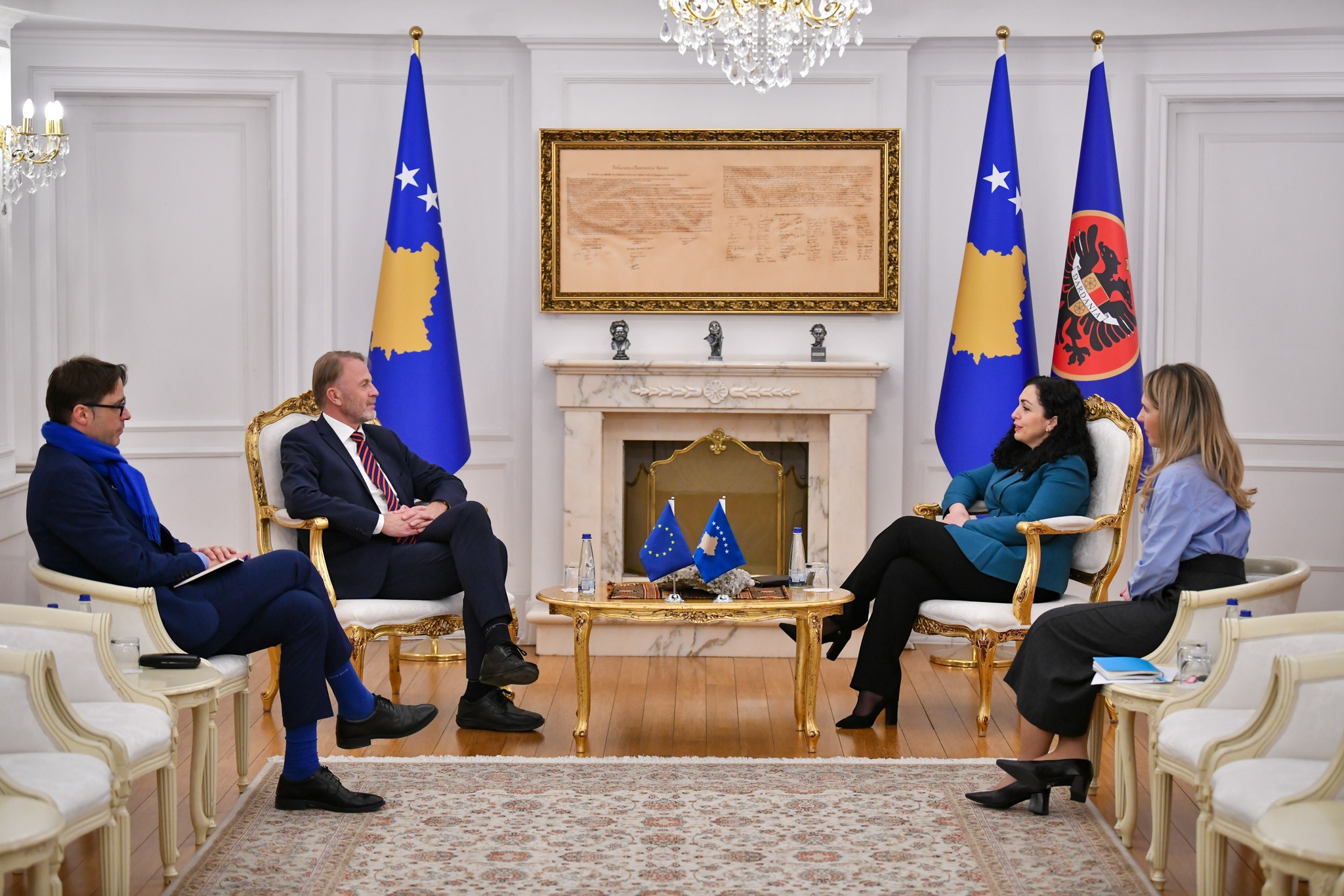 Presidentja Vjosa Osmani e ka pritur sot në takim Ambasadorin e Bashkimit Evropian në Kosovë, Aivo Orav, me të cilin bisedoi për zhvillimet më të fundit në vend, procesin zgjedhor dhe hapat e mëtejshëm për konstituimin e institucioneve të reja, pas zgjedhjeve të 9 shkurtit.