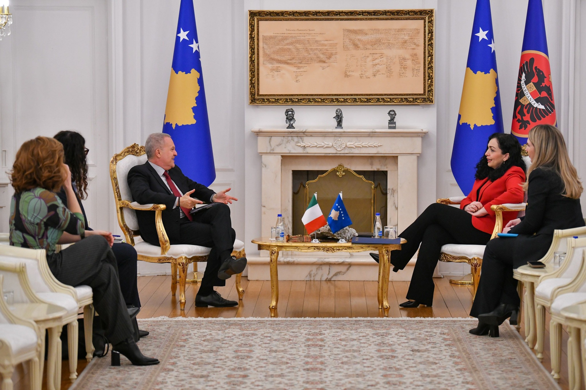 “Presidentja e Republikës së Kosovës, Vjosa Osmani, priti sot në takim ambasadorin italian në Kosovë, z. Antonello De Riu. Në takim u diskutua për zhvillimet e fundit në vend, çështjet e sigurisë, ecurinë e procesit zgjedhor, si dhe konstituimin e institucioneve pas certifikimit përfundimtar të rezultateve nga zgjedhjet parlamentare të 9 shkurtit. Në mes tjerash u diskutuan çështje të bashkëpunimit bilateral me fokus te mundësitë konkrete për thellimin e këtij bashkëpunimi”, shkruhet në njoftim.