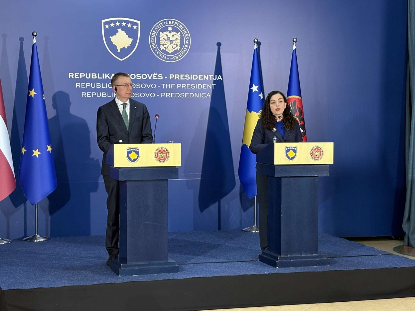 Presidentja Osmani pas takimit me presidentin e Letonisë Rinkevics: Diskutuam për mundësitë e bashkëpunimit në kapacitete mbrojtëse