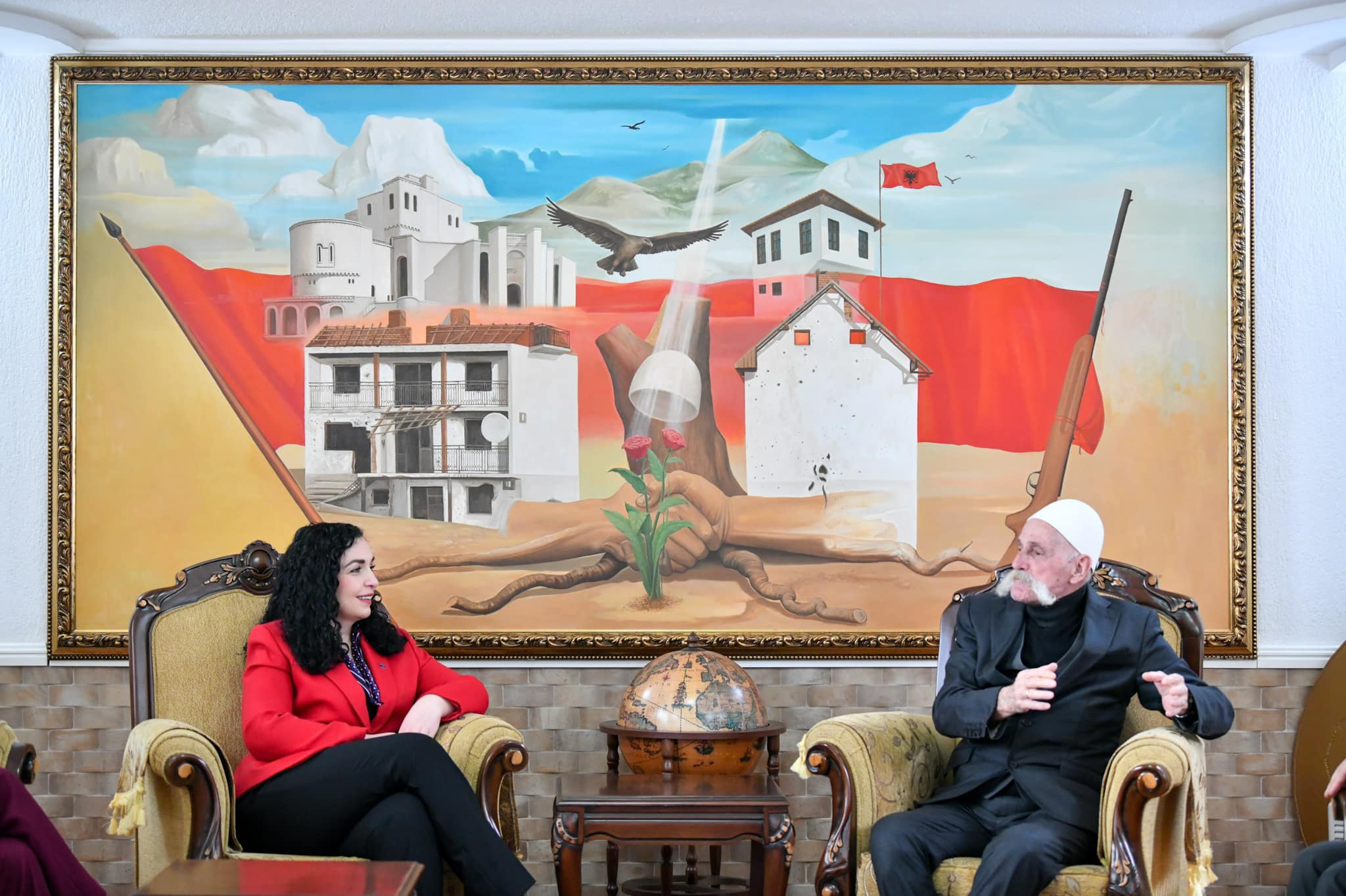 Osmani aty është takuar me Rifat Jasharin. Presidentja ka thënë se komandanti legjendar Adem Jashari dhe familja Jashari në kohët më të errëta, ata ndezën dritën e shpresës.