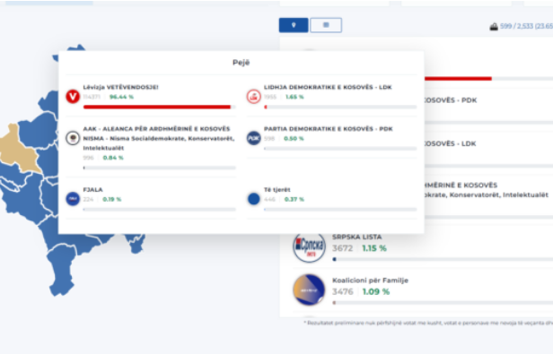 Në Pejë, sipas rezultateve preliminare të KQZ-së, Vetëvendosje doli me 95 për qind të votave.