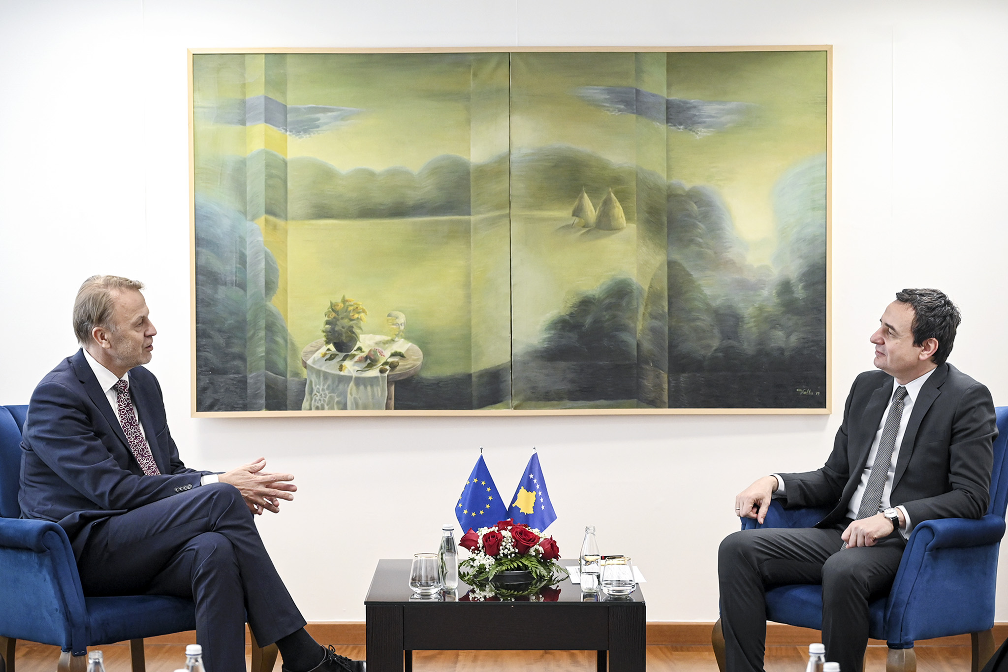 Gjithashtu, në takim u diskutua edhe për domosdoshmërinë e heqjes së masave ndaj Kosovës nga Bashkimi Evropian dhe nevojën për shqyrtim sa më të shpejtë të aplikimit të Kosovës për anëtarësim në BE.”.