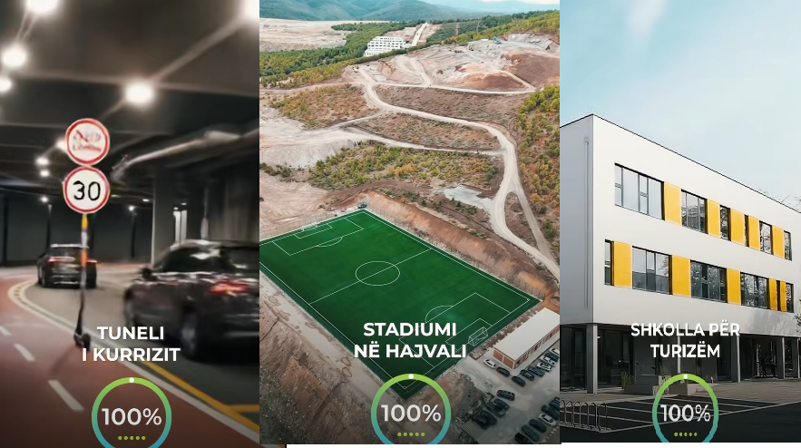 “Tuneli i Kurrizit, stadiumi Hajvali. Shkolla Vranidoll, Shkolla për turizëm. Ndriçimi në rrugën C. Parku i aventurave. Digjitalizimi i shkollave. QMF Veternik. Sheshi Rexhep Luci. Skate Park Kalabri. Platoja te banesat e bardha”, publikohet në video.