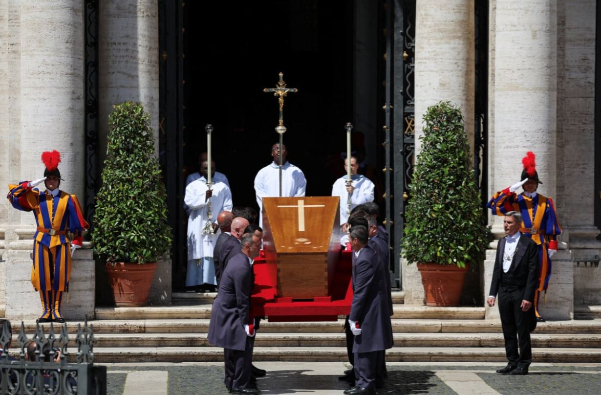 “Riti i varrimit të Papës filloi në orën 13:00. me orën lokale në një ceremoni të kryesuar nga kardinali Kevin Farrell, i cili ishte ngarkuar të bënte aranzhimet për funeralin e Françeskut dhe që së shpejti do të ndihmojë në organizimin e një konklava për zgjedhjen e pasuesit të Françeskut“, ka njoftuar Vatikani